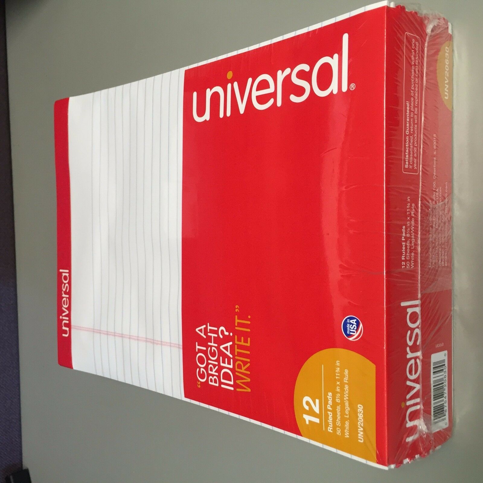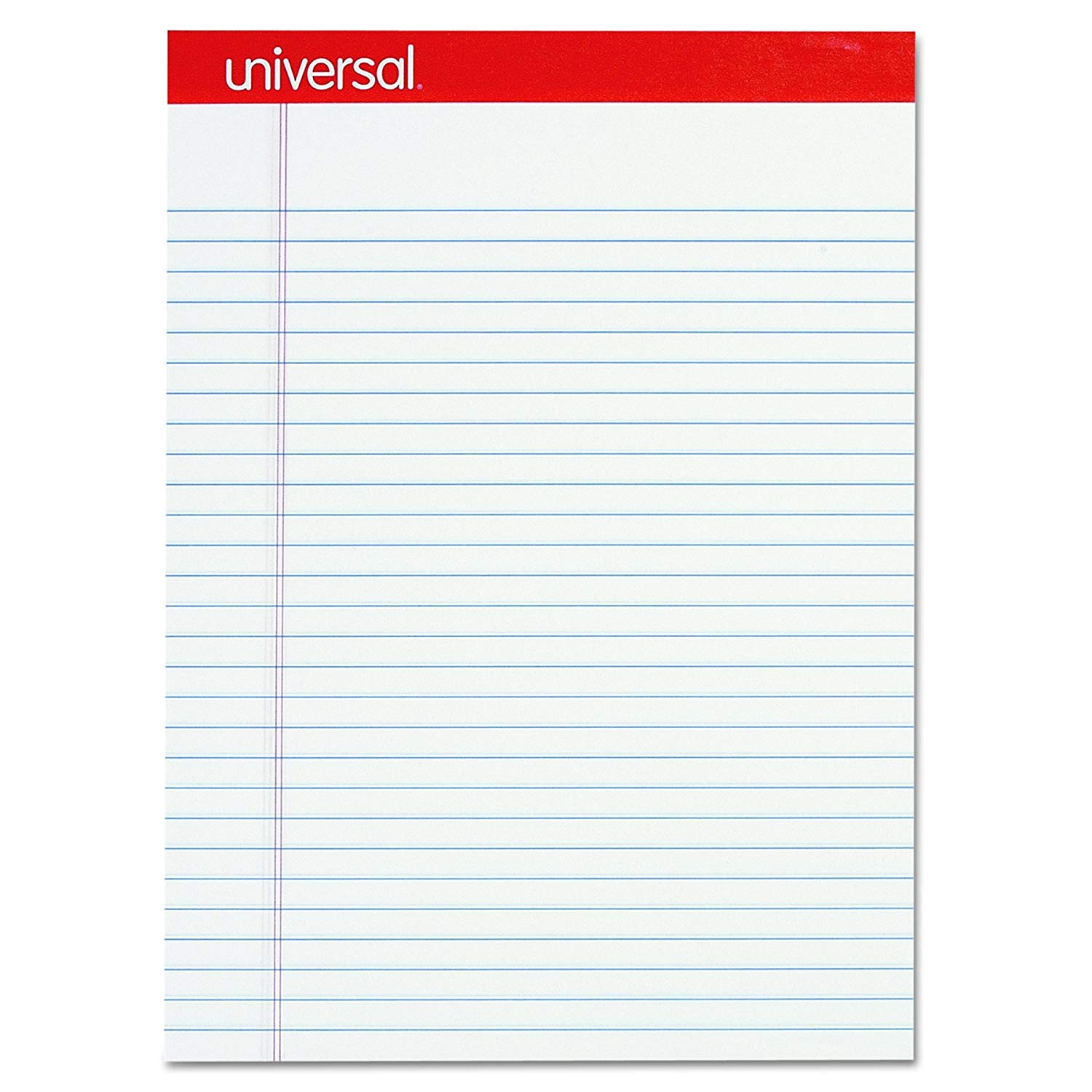 - Universal white legal pads. Legal ruled letter size legal pad 50 sheets pad 12- per pack. Universal unv20630 legal pad - perforated edge writing pad, legal ruled, letter, white,50-sheet, dozen economy ruled writing pad, sheet size 8-1/2 x 11-3/4 inches, white legal pads, rule legal, paper weight 16 lb. Number of sheets 50 binding strip, paper color white package quantity 12 legal pads. Why choose these Universal white legal pads? Great value and high quality legal pads by the United States largest printing company. We take care of our clients. Hot and fresh off the press. Made in America, top quality value for your home and office and note taking pleasures.